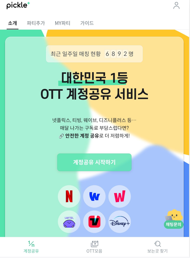 많은 분들이 아시겠지만 피클플러스라는 공유 사이트가 있는데, 이 사이트를 통해 넷플릭스, 티빙, 웨이브, 왓챠 등을 공유해서 이용할 수 있습니다. 보통 4인이 공유하는 개념이라 정식 구독 비용의 1/4 정도로 이용할 수 있습니다.