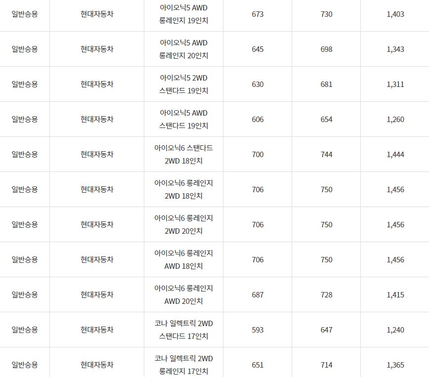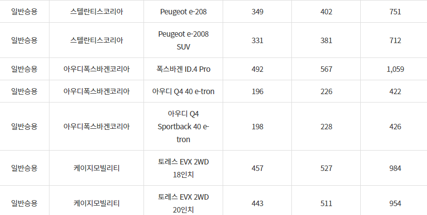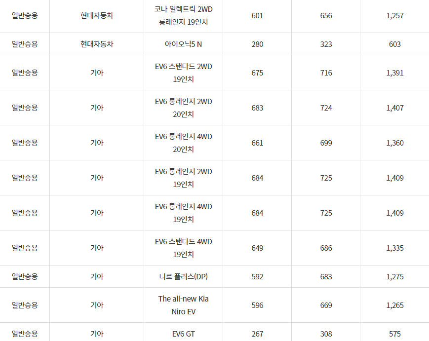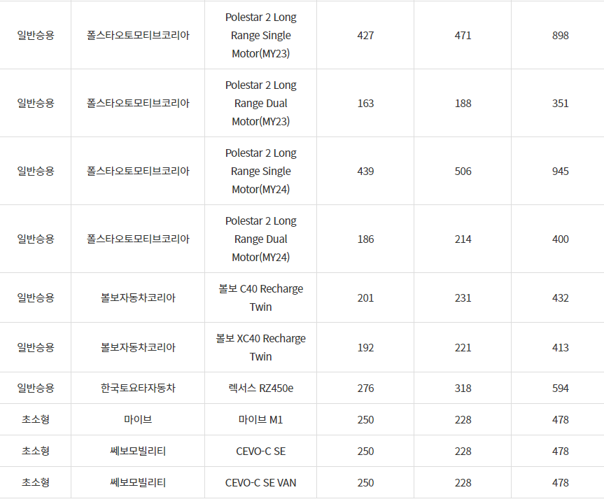 2024년 강진군 전기차 차종별 보조금 (국비+지방비)
