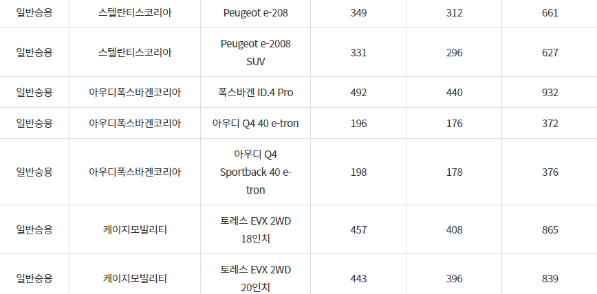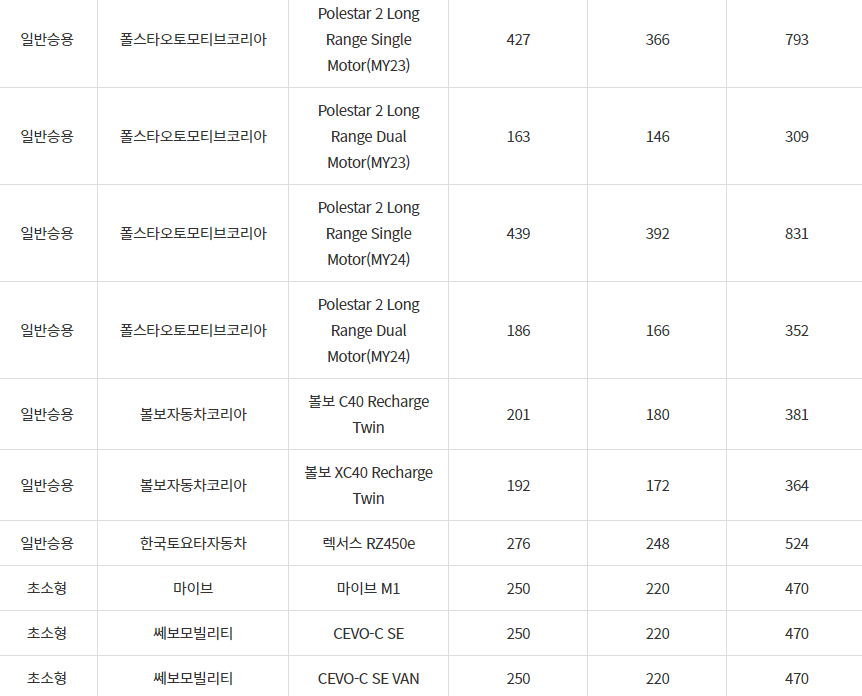 2024년 거제시 전기차 차종별 보조금 (국비+지방비)