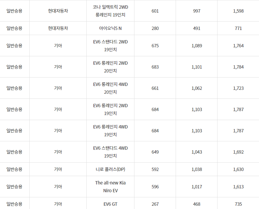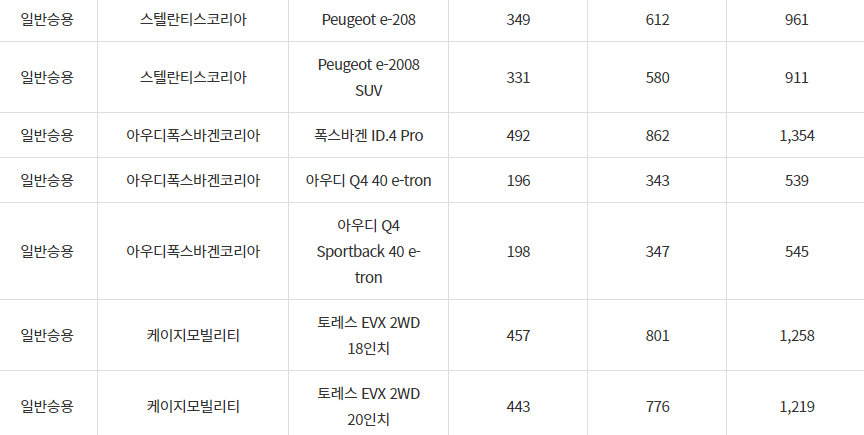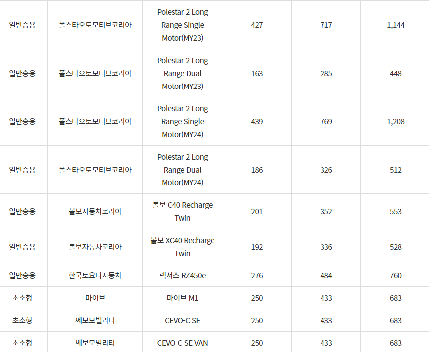 2024년 거창군 전기차 차종별 보조금 (국비+지방비)