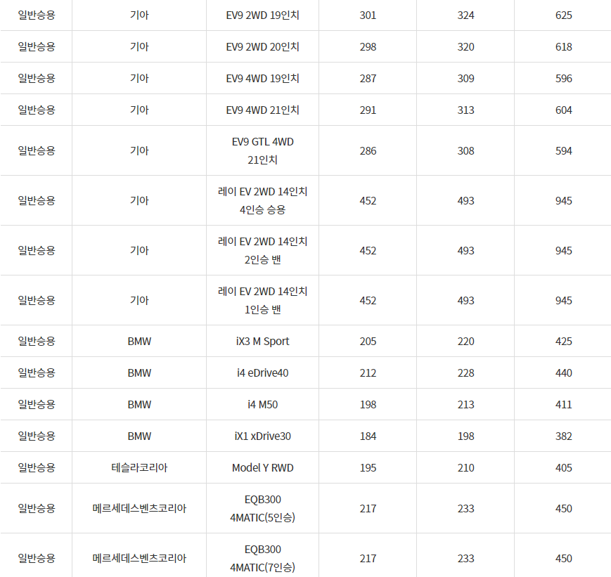 2024년 공주시 전기차 차종별 보조금 (국비+지방비)