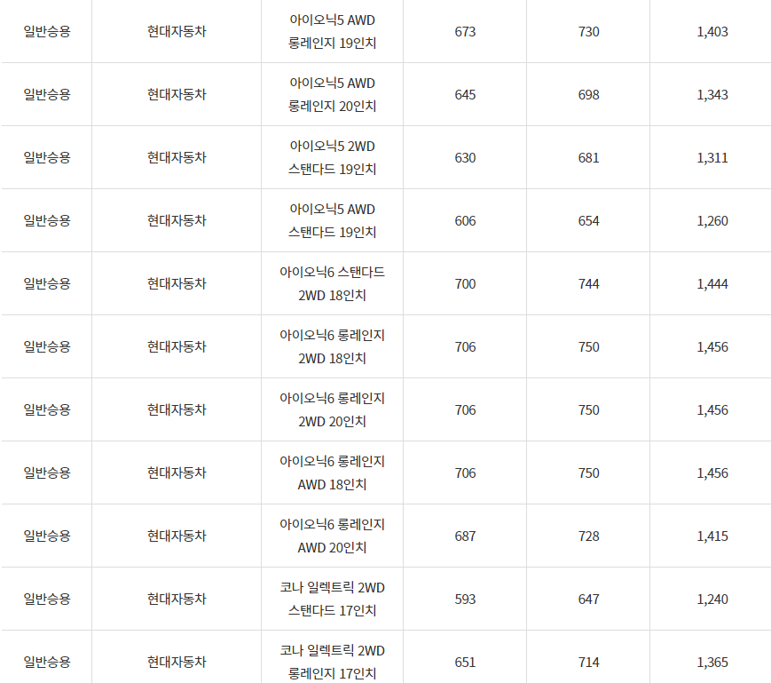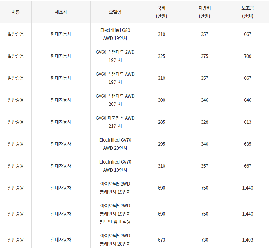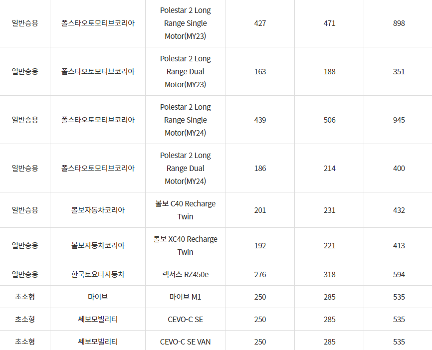 2024년 광양시 전기차 차종별 보조금 (국비+지방비)