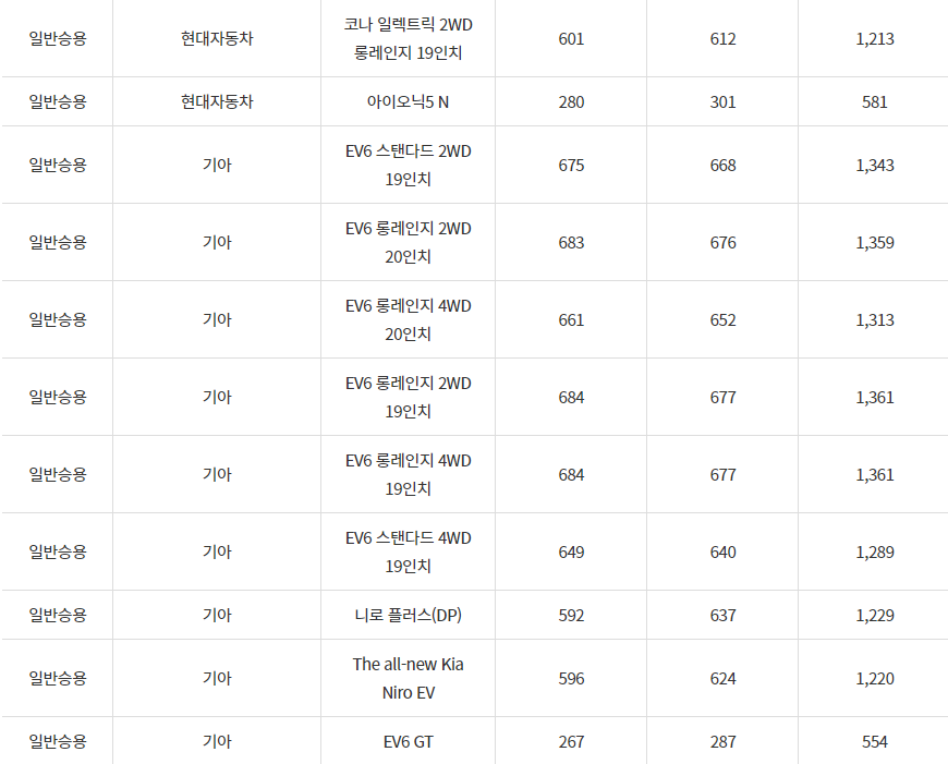 2024년 금산군 전기차 차종별 보조금 (국비+지방비)