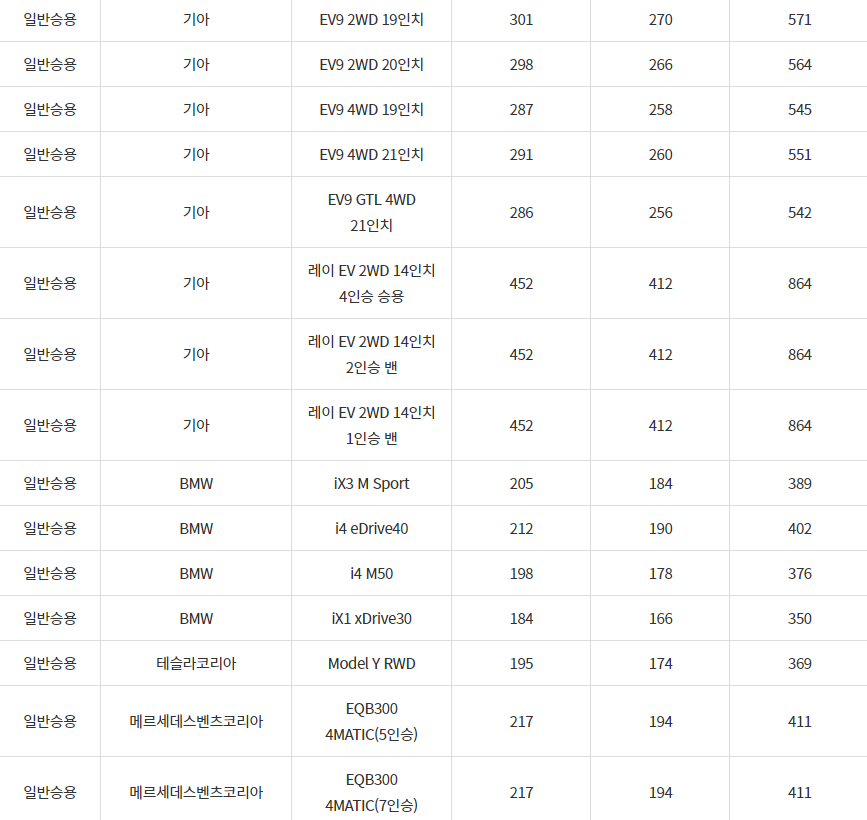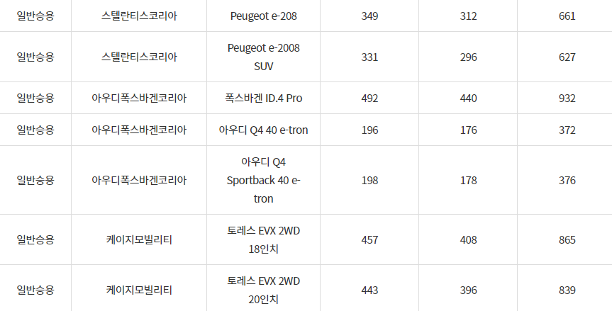 2024년 남해군 전기차 차종별 보조금 (국비+지방비)