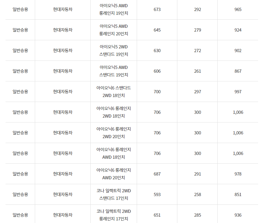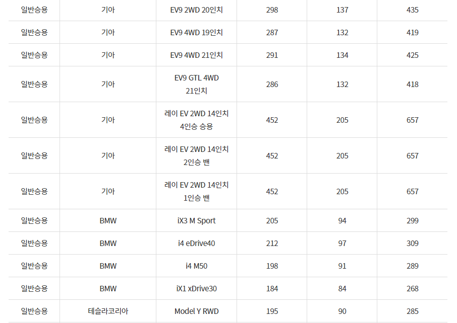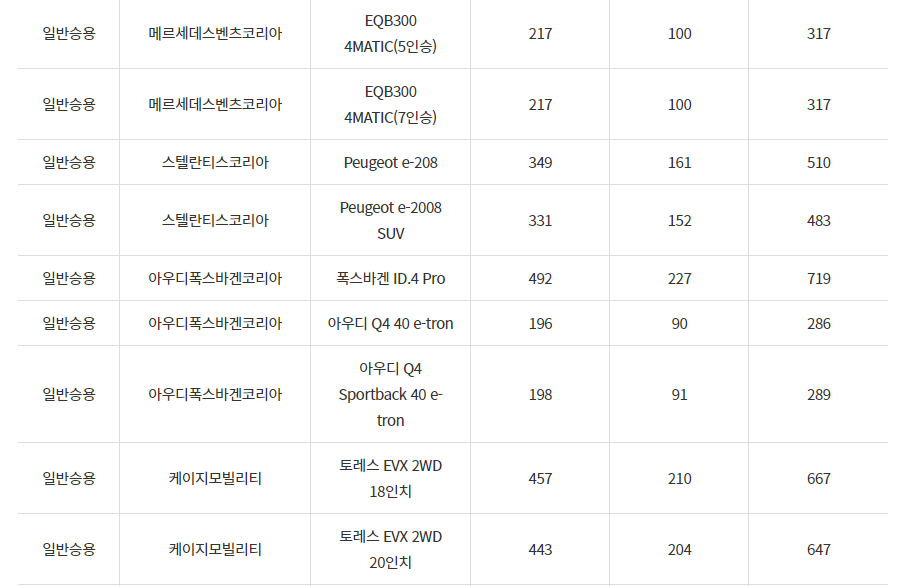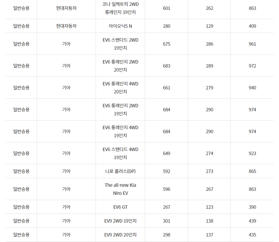 2024년 대구광역시 전기차 차종별 보조금 (국비+지방비)