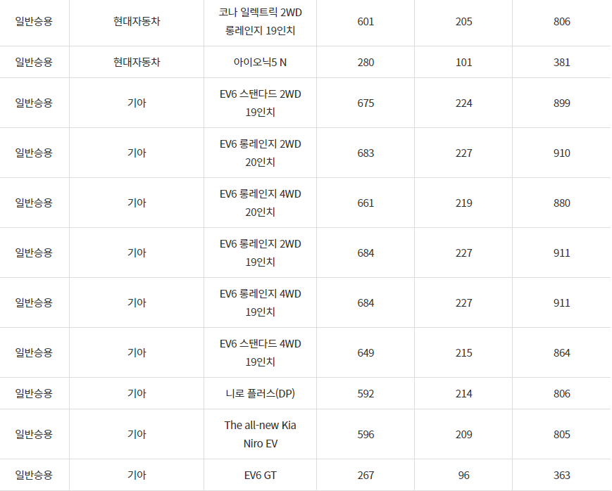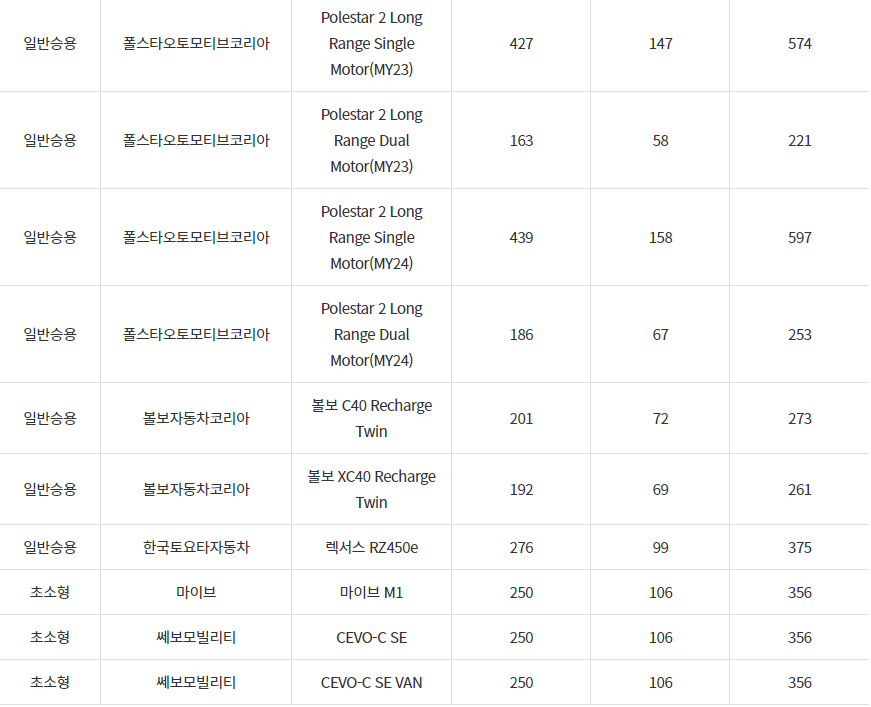 2024년 동두천시 전기차 차종별 보조금 (국비+지방비)