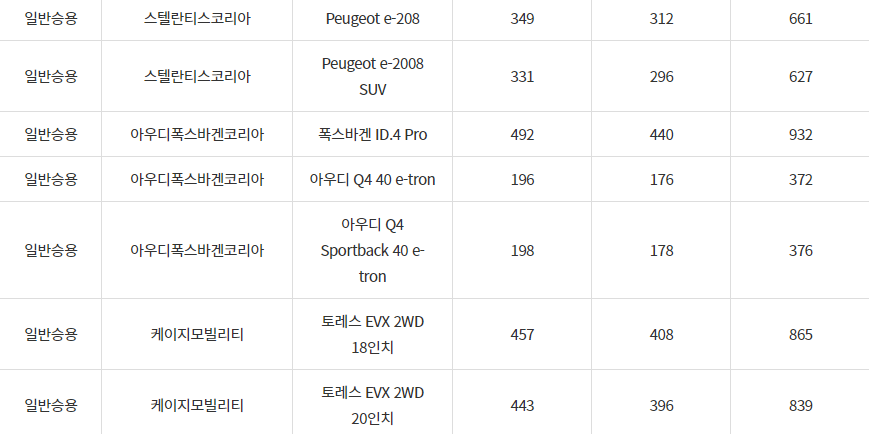 2024년 밀양시 전기차 차종별 보조금 (국비+지방비)
