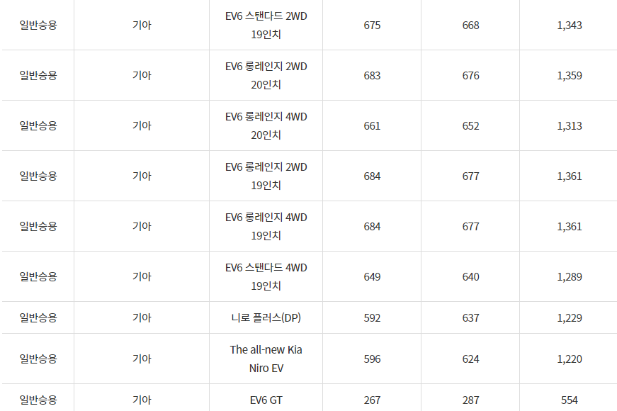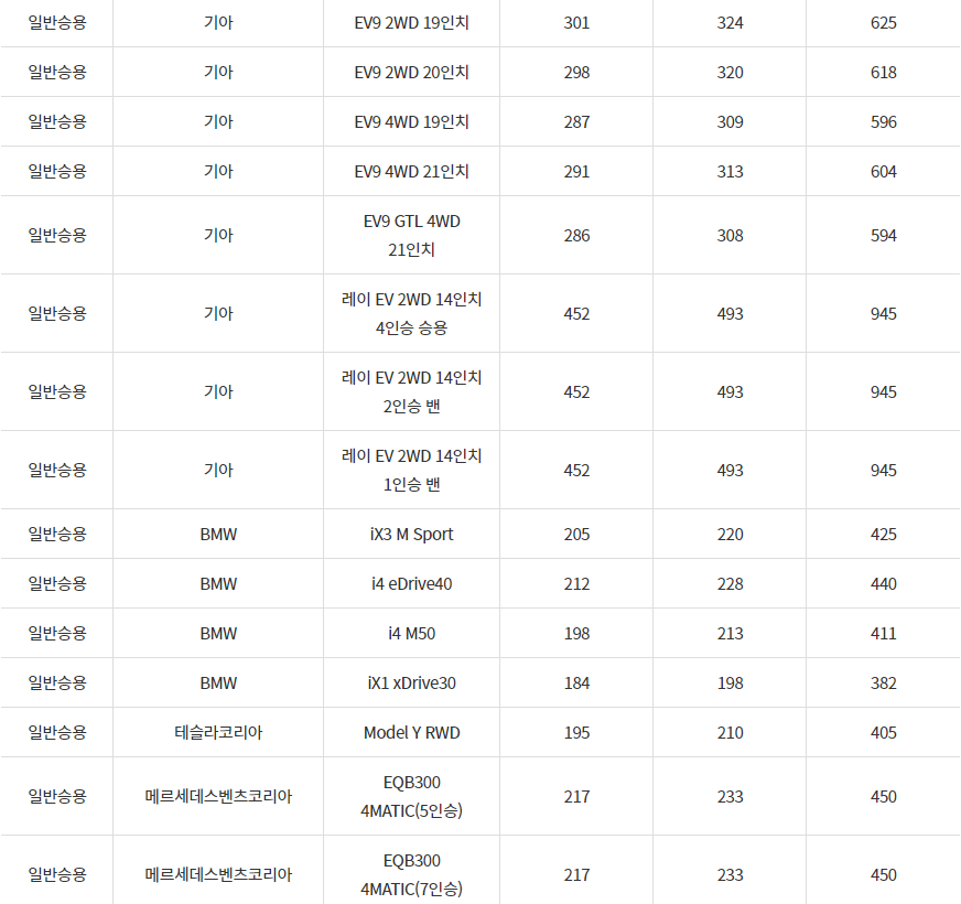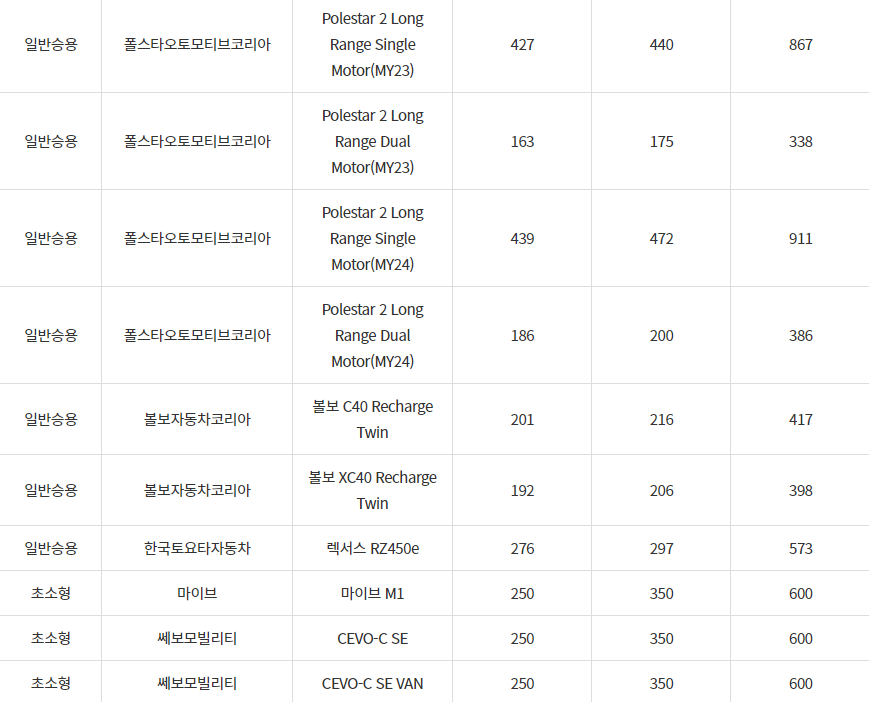 2024년 전기차 차종별 보조금, 보령시