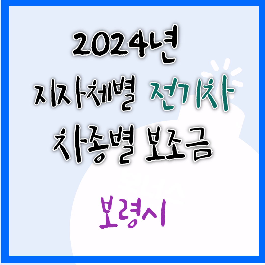 2024년 보령시 전기차 차종별 보조금 (국비+지방비)