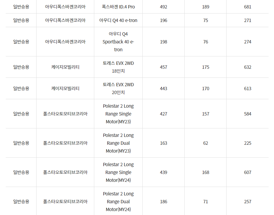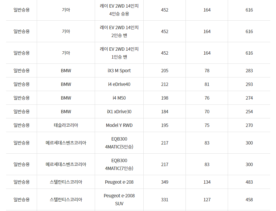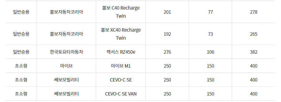 2024년 부산광역시 전기차 차종별 보조금 (국비+지방비)