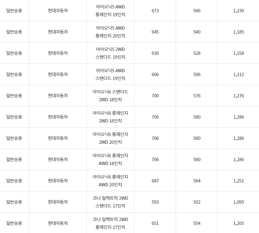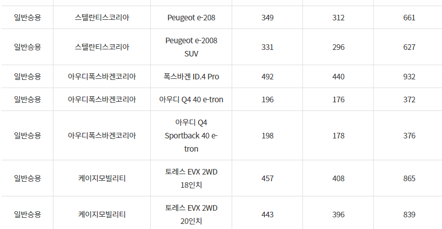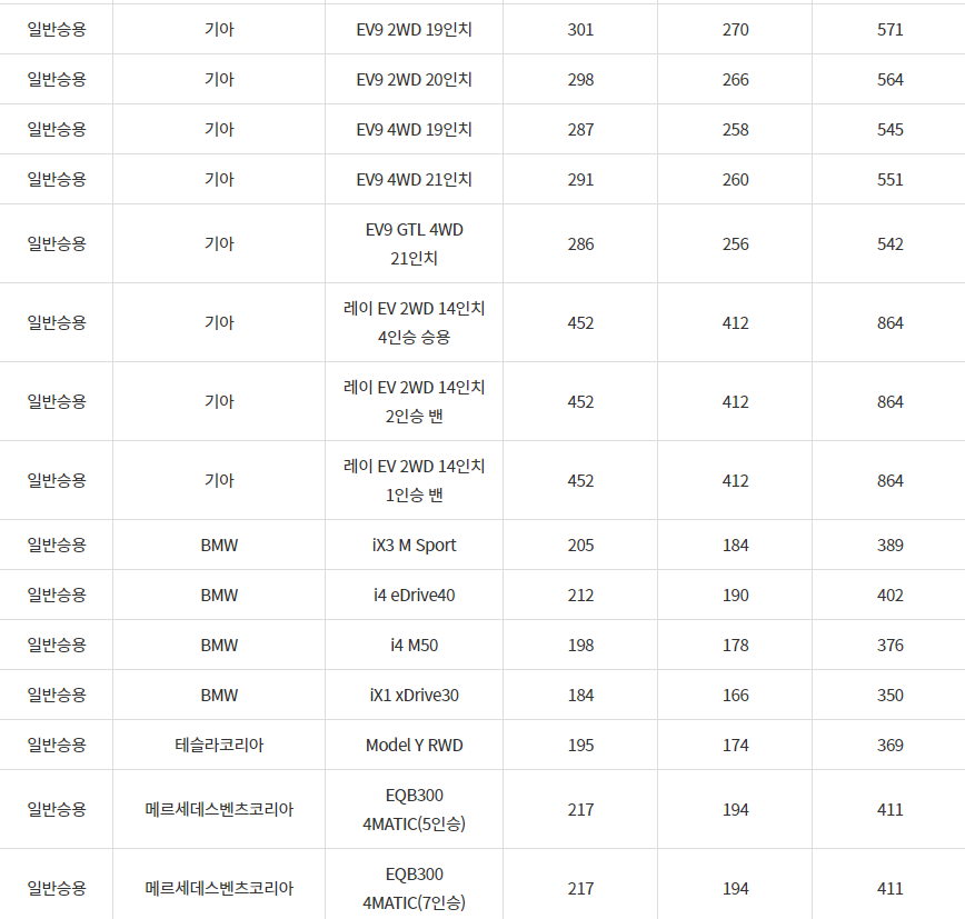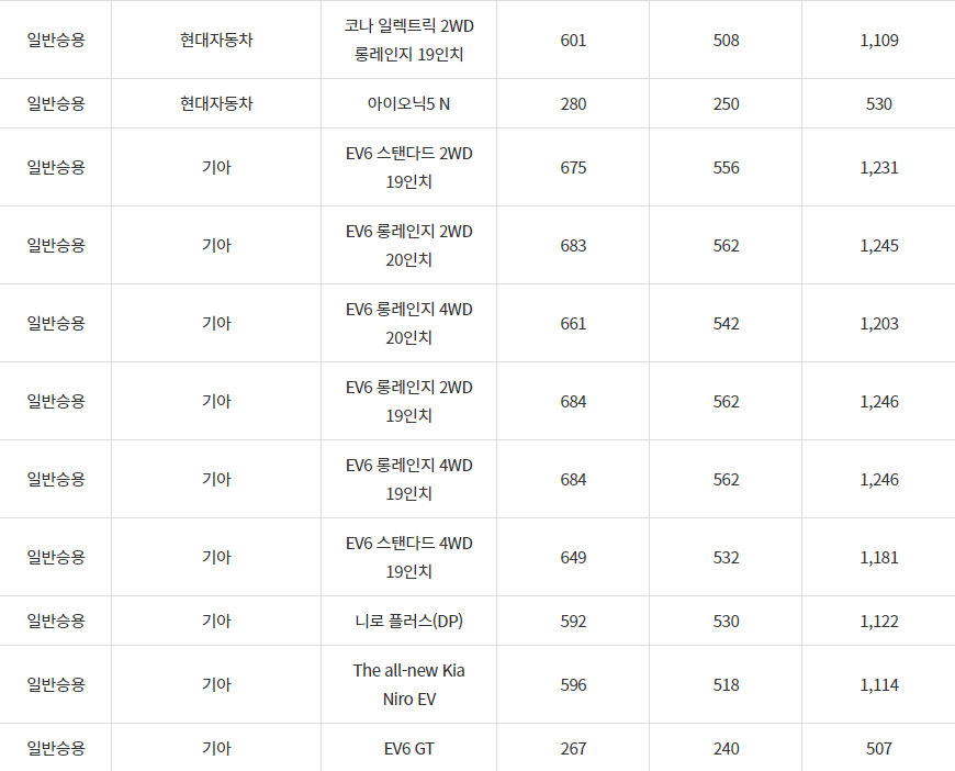 2024년 양산시 전기차 차종별 보조금 (국비+지방비)