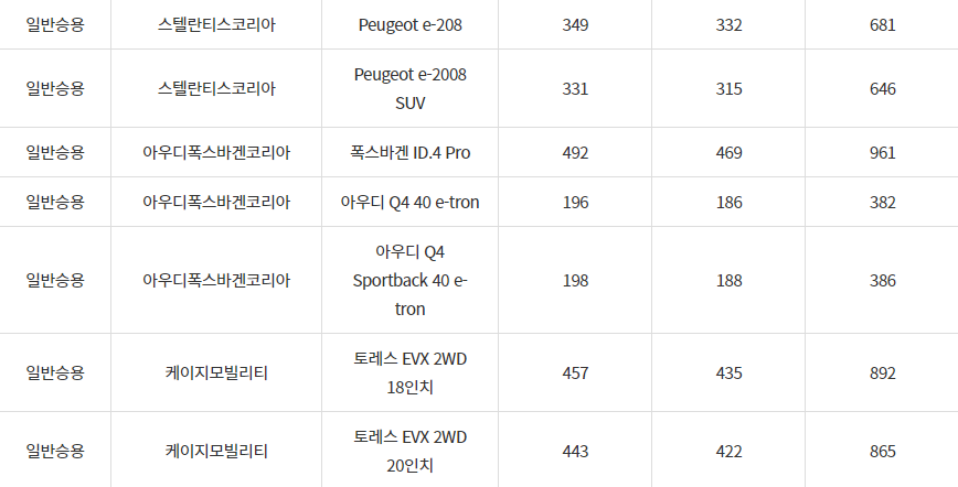 2024년 여수시 전기차 차종별 보조금 (국비+지방비)