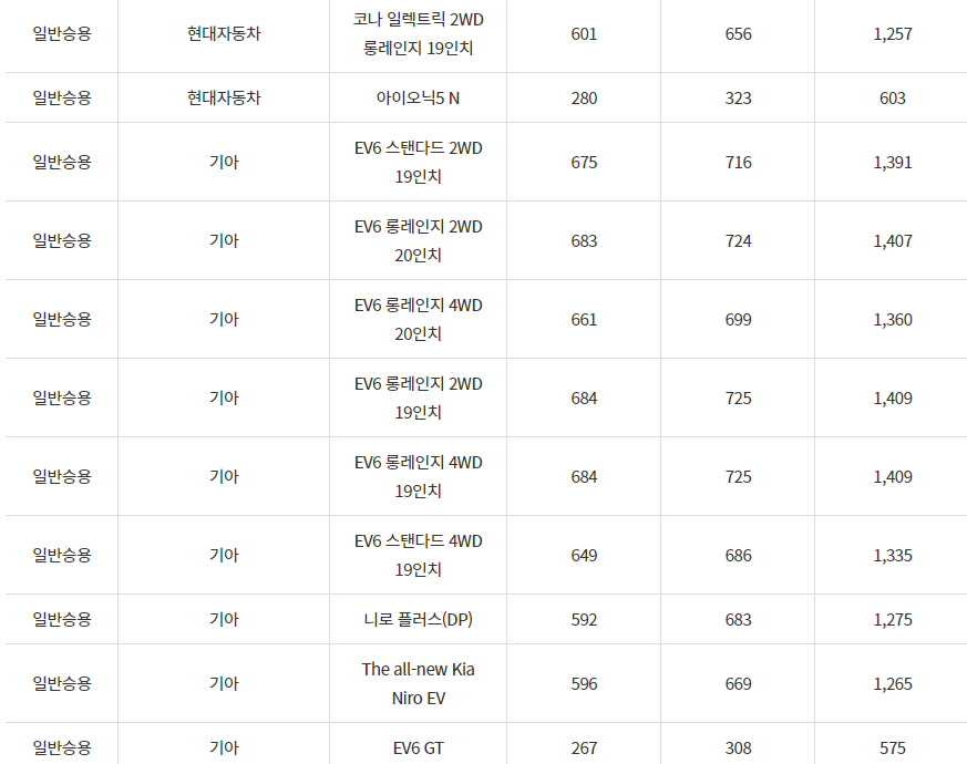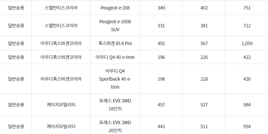 2024년 전기차 차종별 보조금, 영광군
