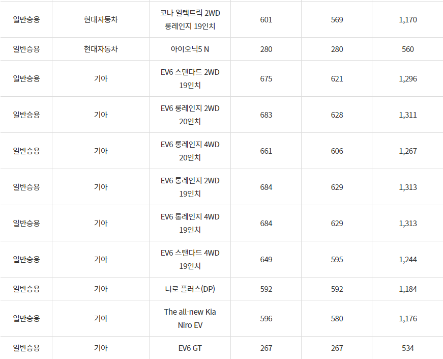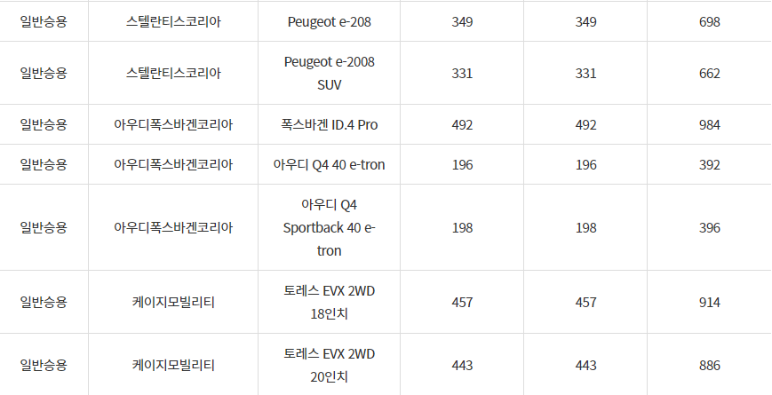 2024년 옥천군 전기차 차종별 보조금 (국비+지방비)