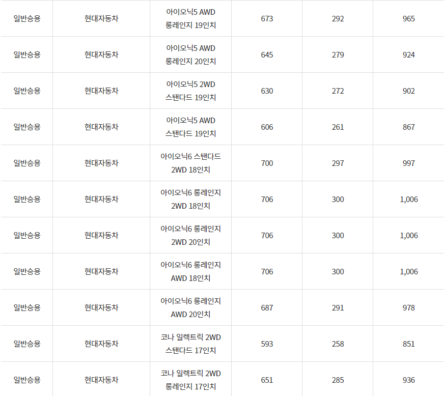 2024년 용인시 전기차 차종별 보조금 (국비+지방비)