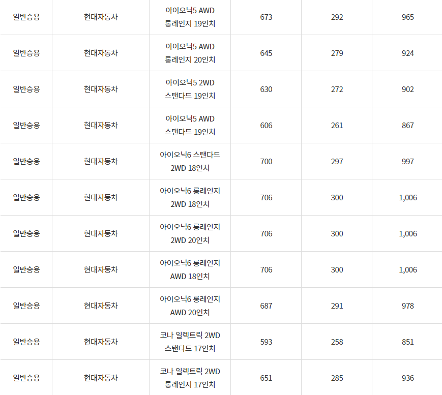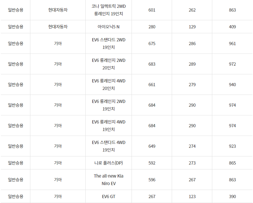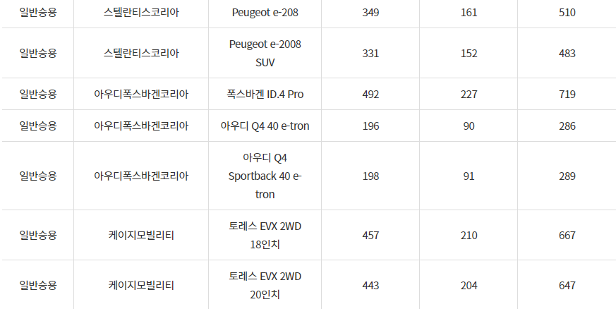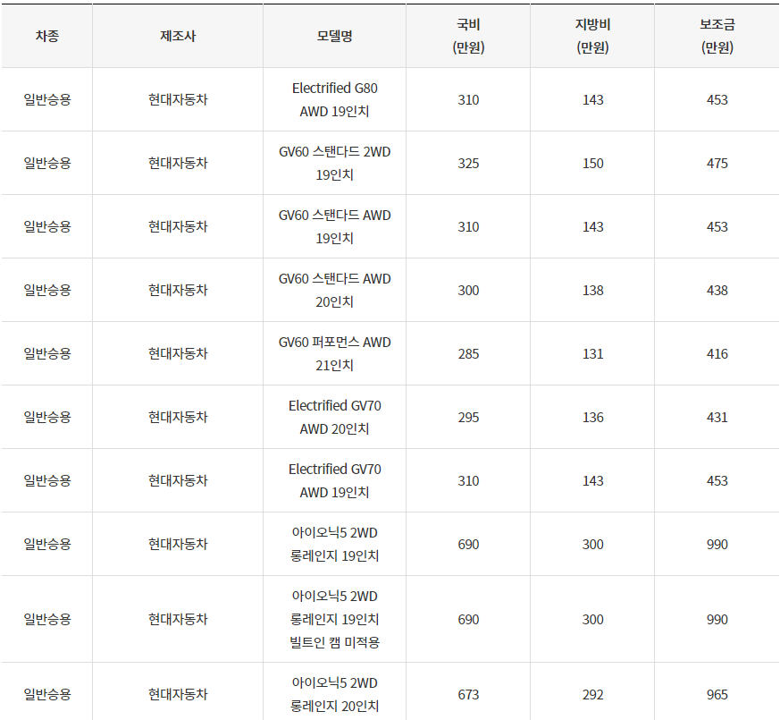 2024년 의왕시 전기차 차종별 보조금 (국비+지방비)