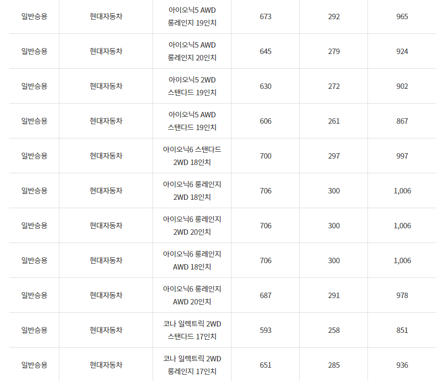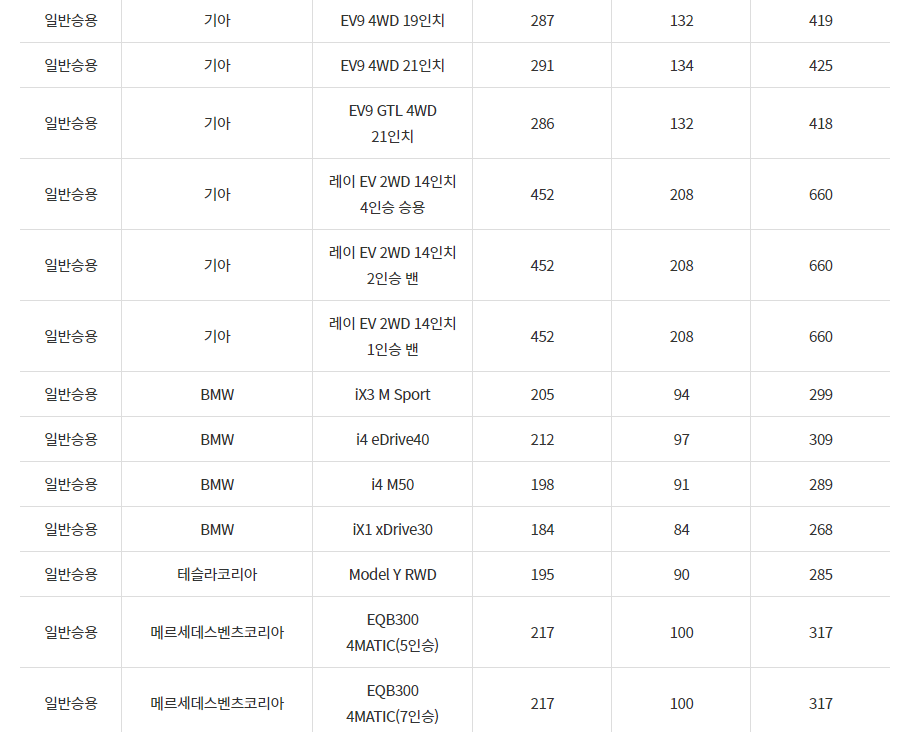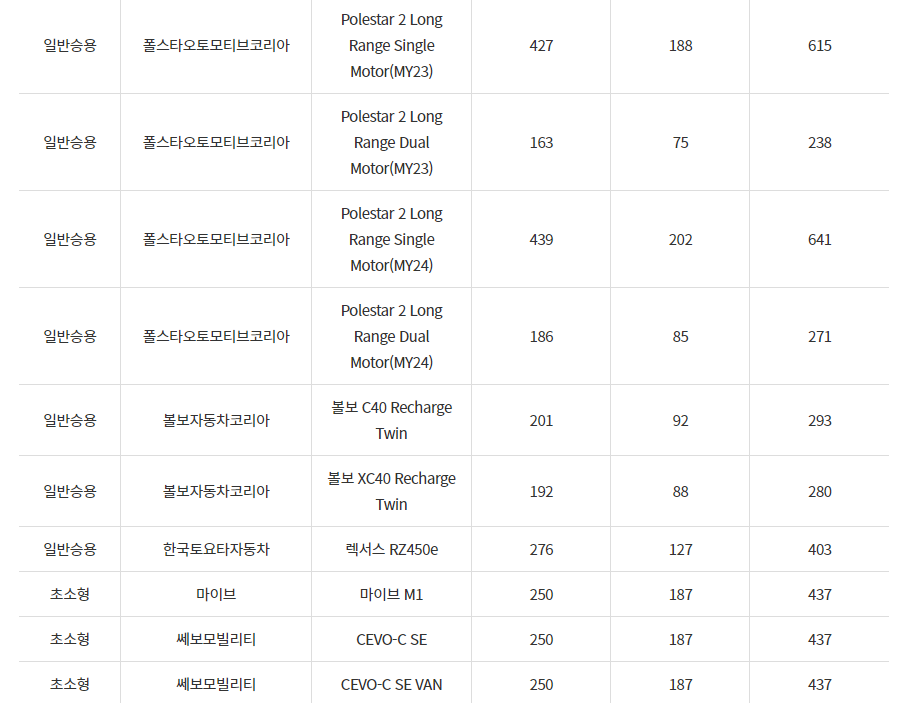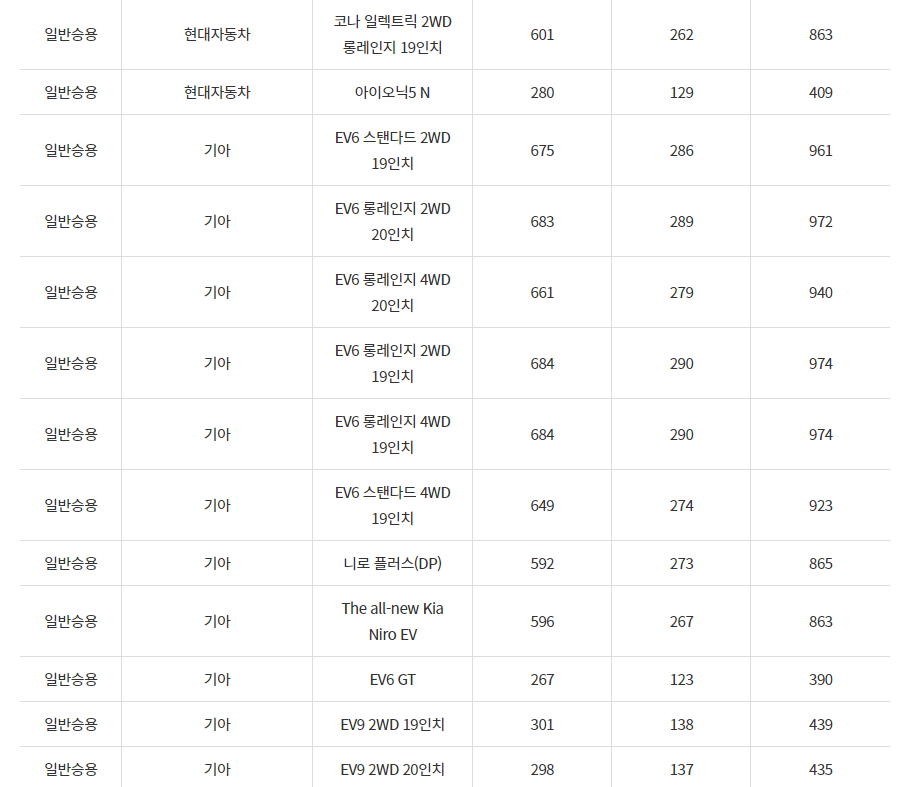 2024년 인천광역시 전기차 차종별 보조금 (국비+지방비)