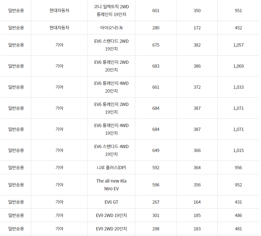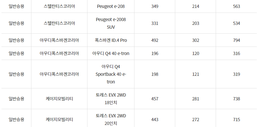 2024년 제주특별자치도 전기차 차종별 보조금 (국비+지방비)