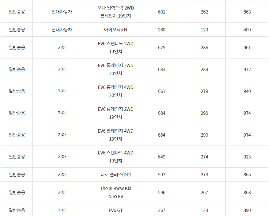 2024년 파주시 전기차 차종별 보조금 (국비+지방비)