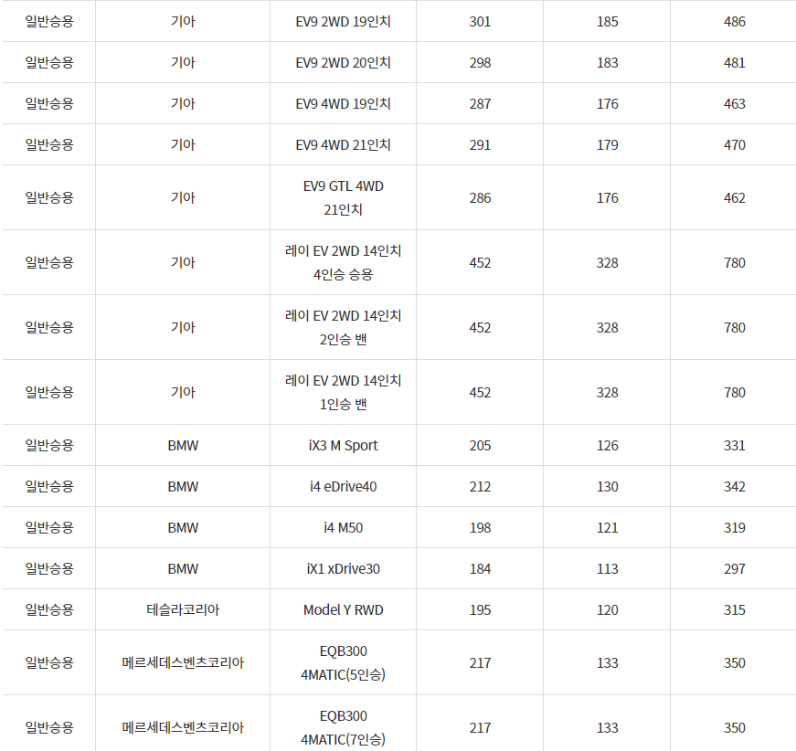 2024년 평택시 전기차 차종별 보조금 (국비+지방비)