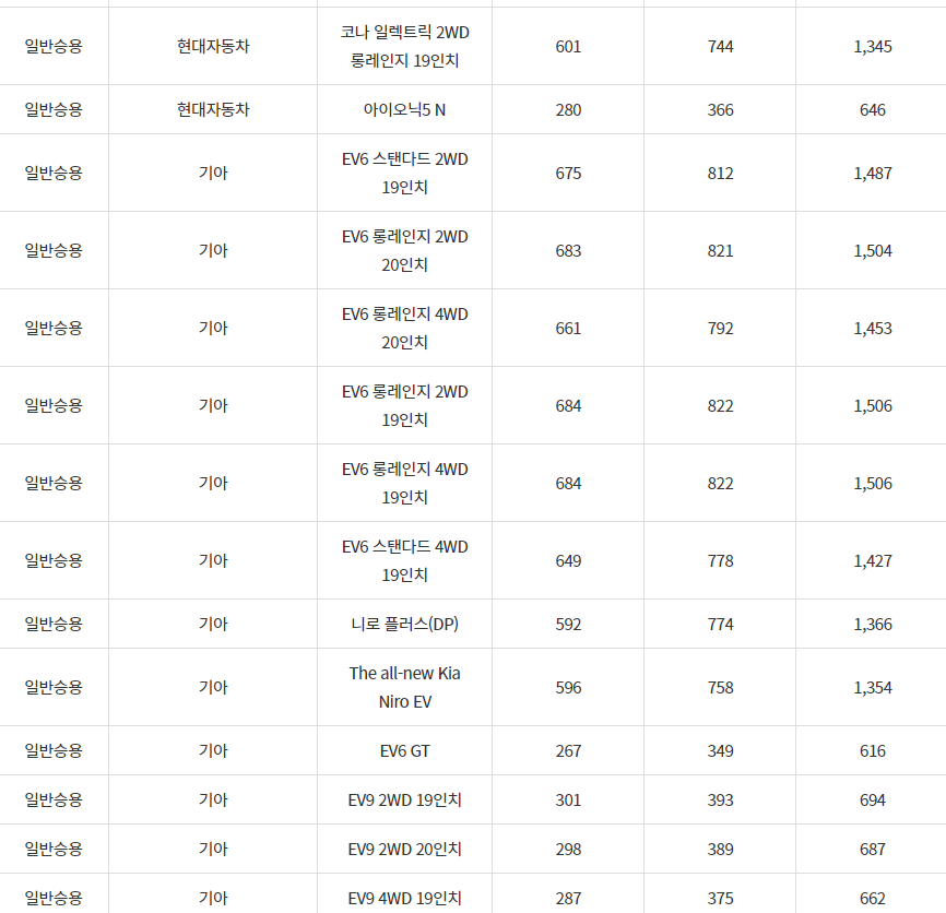 2024년 함평군 전기차 차종별 보조금 (국비+지방비)
