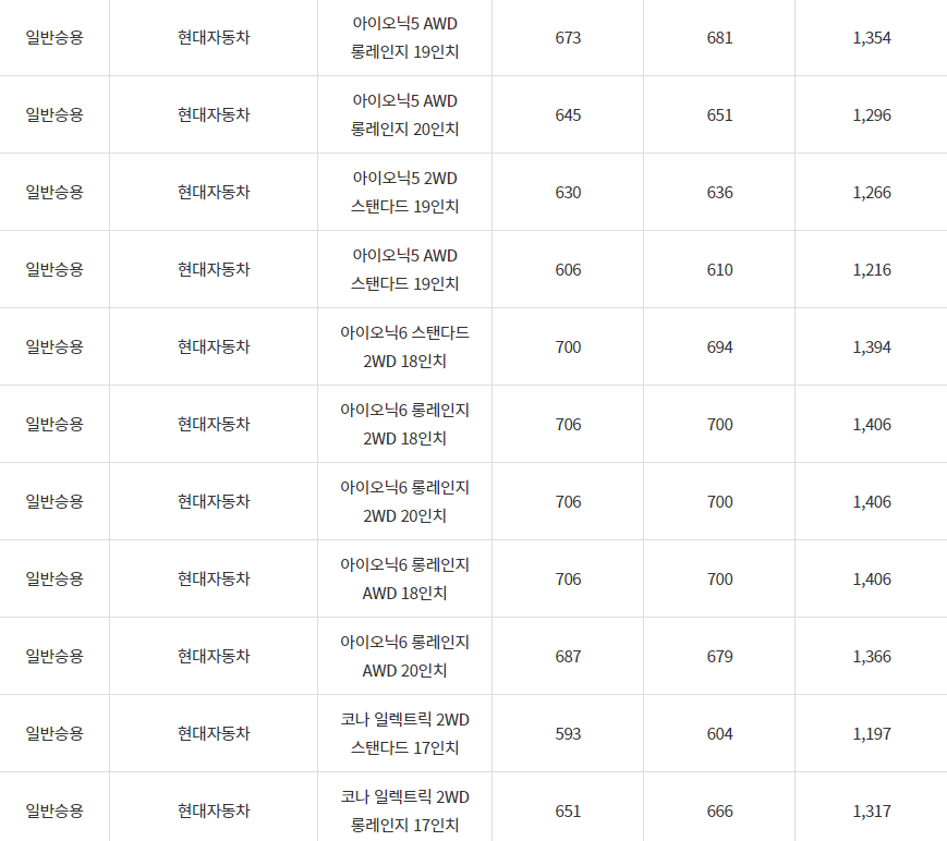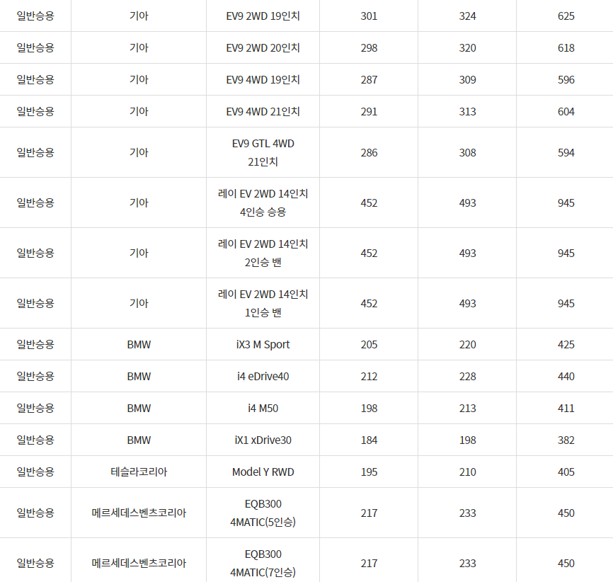 2024년 홍성군 전기차 차종별 보조금 (국비+지방비)